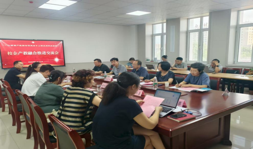 7月16日上午,山西省产教融合促进会数字文旅(康体)专业委员会(以下简称“专委会”)在山西应用科技学院召开校企产教融合推进会。促进会常务理事、副秘书长范亚运,专委会主任委员、太原云时代技术有限公司董事长杨志忠,专委会执行秘书长、山西和信基业科技股份有限公司董事长赵秦等一行6人,山西应用科技学院副校长郝海龙,校长助理兼教务处处长、专委会副主任委员李俊晓及相关学院负责人参会,双方聚焦数字文旅、人工智能、康养服务等领域,共商应用型人才培养机制。会议由李俊晓主持。