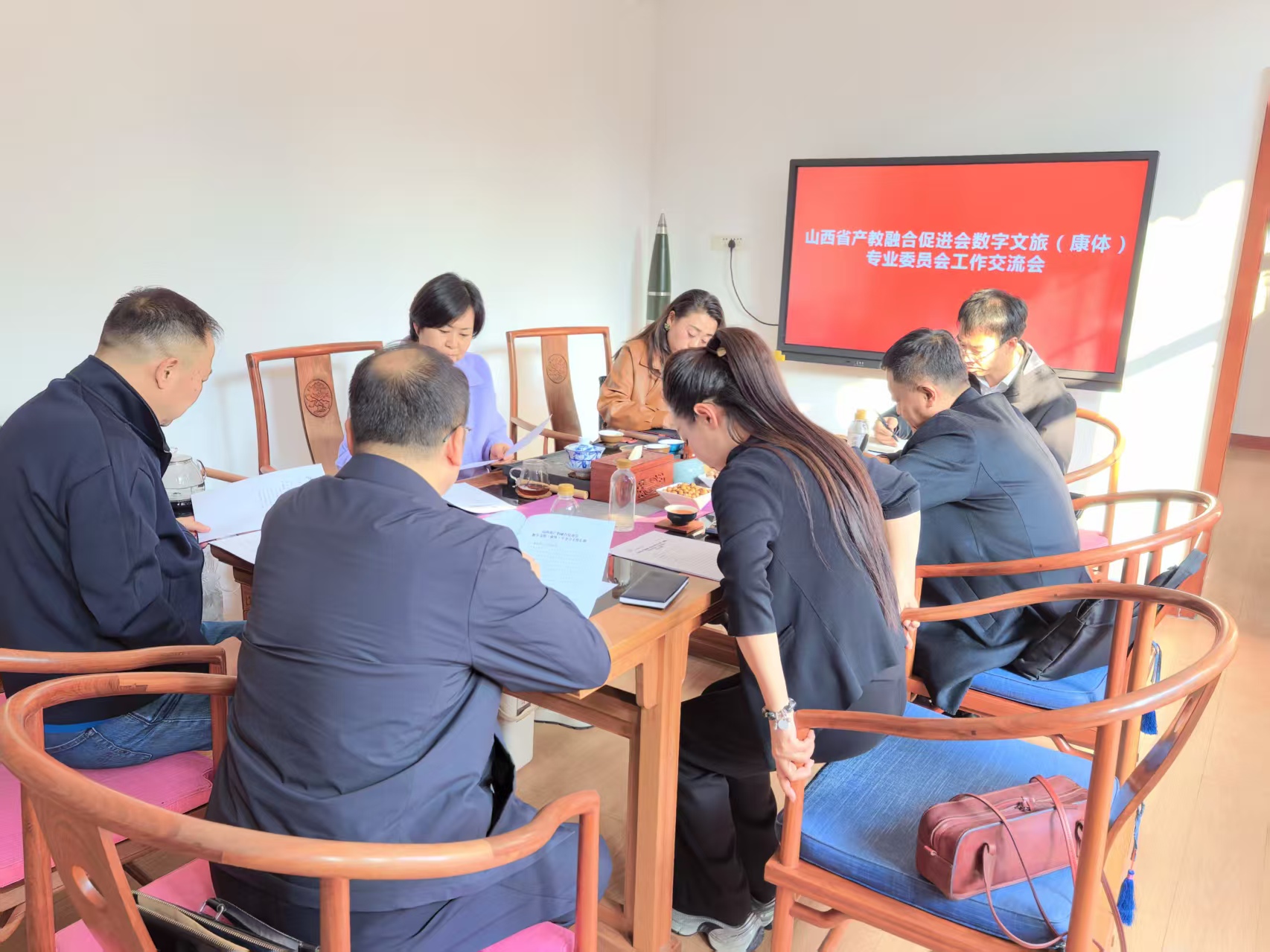 当前位置:首页 > 专委会动态10月29日,山西省产教融合促进会数字文旅(康体)专业委员会(以下简称“专委会”)工作交流会在专委会办公驻所山西和信基业科技股份有限公司召开。山西省产教融合促进会副理事长陈清胜,副秘书长、会员工作部部长范亚运出席会议并指导工作。专委会主任委员、太原云时代技术有限公司董事长杨志忠,秘书长、山西传媒学院艺术设计学院院长高宇宏,执行秘书长、山西和信基业科技股份有限公司董事长赵秦,副主任委员单位文旅中国·产业创新中心总经理赵玮燚等代表参加会议。